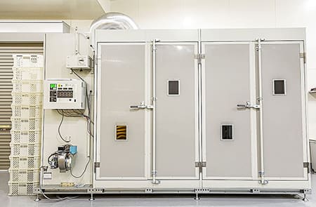 衛生面を考慮し、天日干しではなく室内循環式乾燥機を使用しています。従来型の一方送風式乾燥機に比べて、さつまいもから出た水分だけを排湿しつつ、栄養素の損失を防ぐことが可能となりました。しっとり美味しい、かつ栄養価満点の、色鮮やかな干し芋にこだわっています。