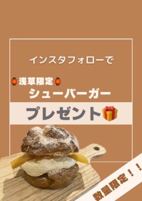 浅草店 イベント開催 インスタフォローでシューバーガープレゼント